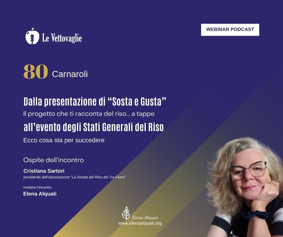 Un webinar organizzato per informarti su cosa sta per succedere! Cristiana Sartori ci racconta di un’ idea nata dall’Associazione LA STRADA DEL RISO DEI TRE FIUMI di cui è presidente, dove si è pensato di intraprendere un cammino lungo la Via Francigena, nell’anno del Giubileo Agro-Ambientale, per promuovere l’evento STATI GENERALI DEL RISO 2025 e gli 80 anni del riso Carnaroli Classico. Non è più un’idea, è una realtà e te la raccontiamo in questo webinar dove Cristiana svela come si svolgeranno questi due eventi ma, soprattutto, il valore e l’importanza profonda che hanno insieme.
