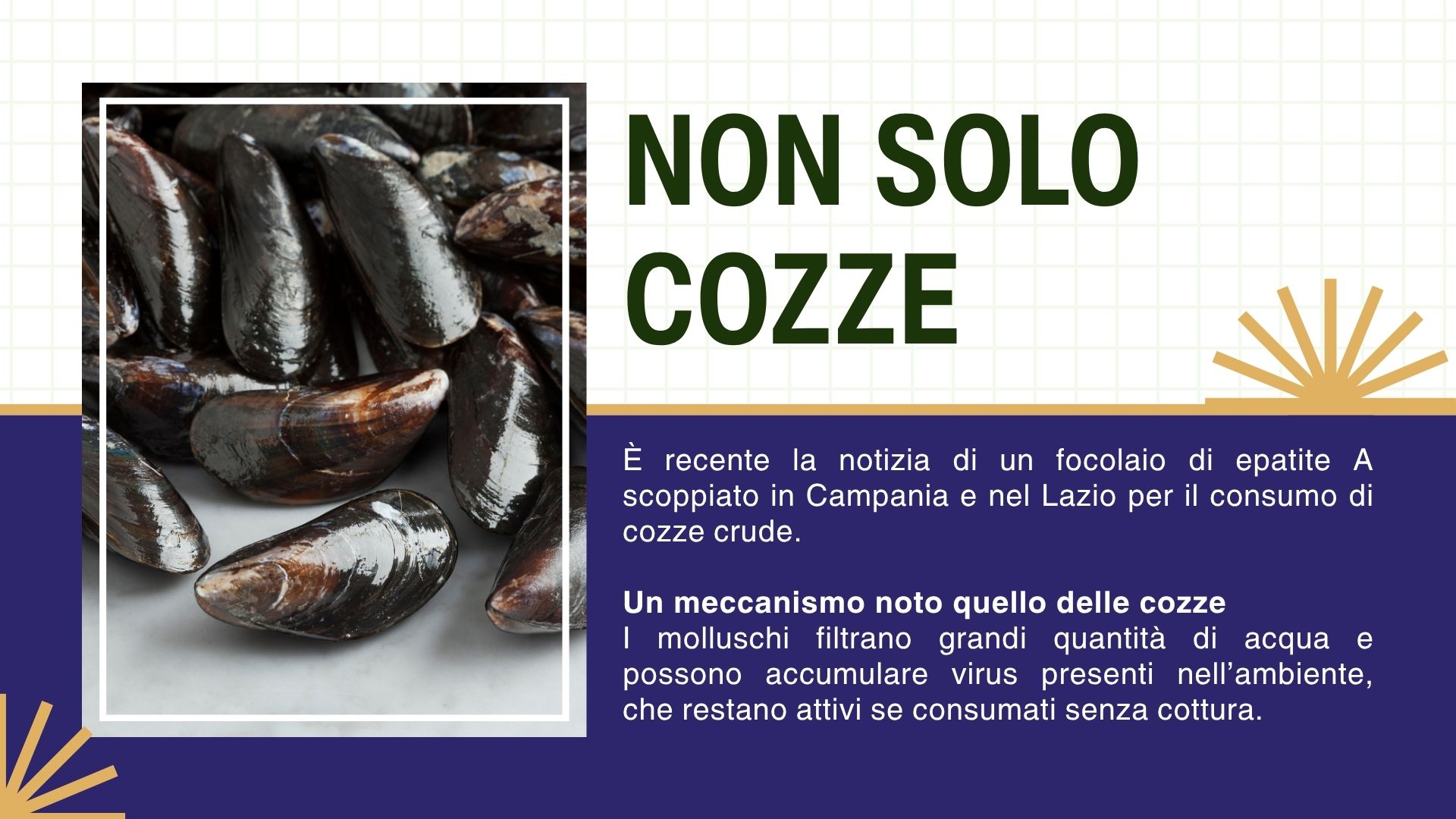 I molluschi filtrano grandi quantità di acqua e possono accumulare virus presenti nell’ambiente, che restano attivi se consumati senza cottura.