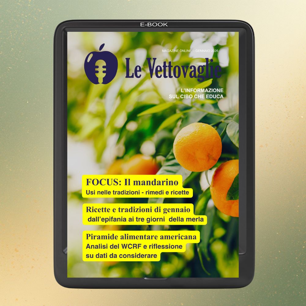 Molti sono i contenuti pubblicati nel mese di gennaio – Il focus di questo mese è doppio, uno è dedicato ai mandarini e l’altro all’avena: la loro storia, gli usi, le tradizioni, i rimedi e moltissime ricette. Le politiche alimentari sono dedicate alle nuove linee guida alimentari, con l’analisi del WCRF e una riflessione con dati da considerare. Il mese di gennaio è stato ricco di feste e ne abbiamo parlato partendo dall’epifania sino al bellissimo racconto dei tre giorni della merla, quali le usanze e le molte ricette delle diverse tradizioni. Sessanta pagine di informazione, curiosità e ancora tantissime ricette.